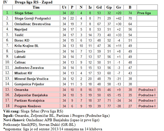Kup FINALE FSP Prijedor: Omarska – Borac (K. Dubica) 2-1 4.okt 9.kolo Omarska – Ozren 4-0 opširnije 8.okt