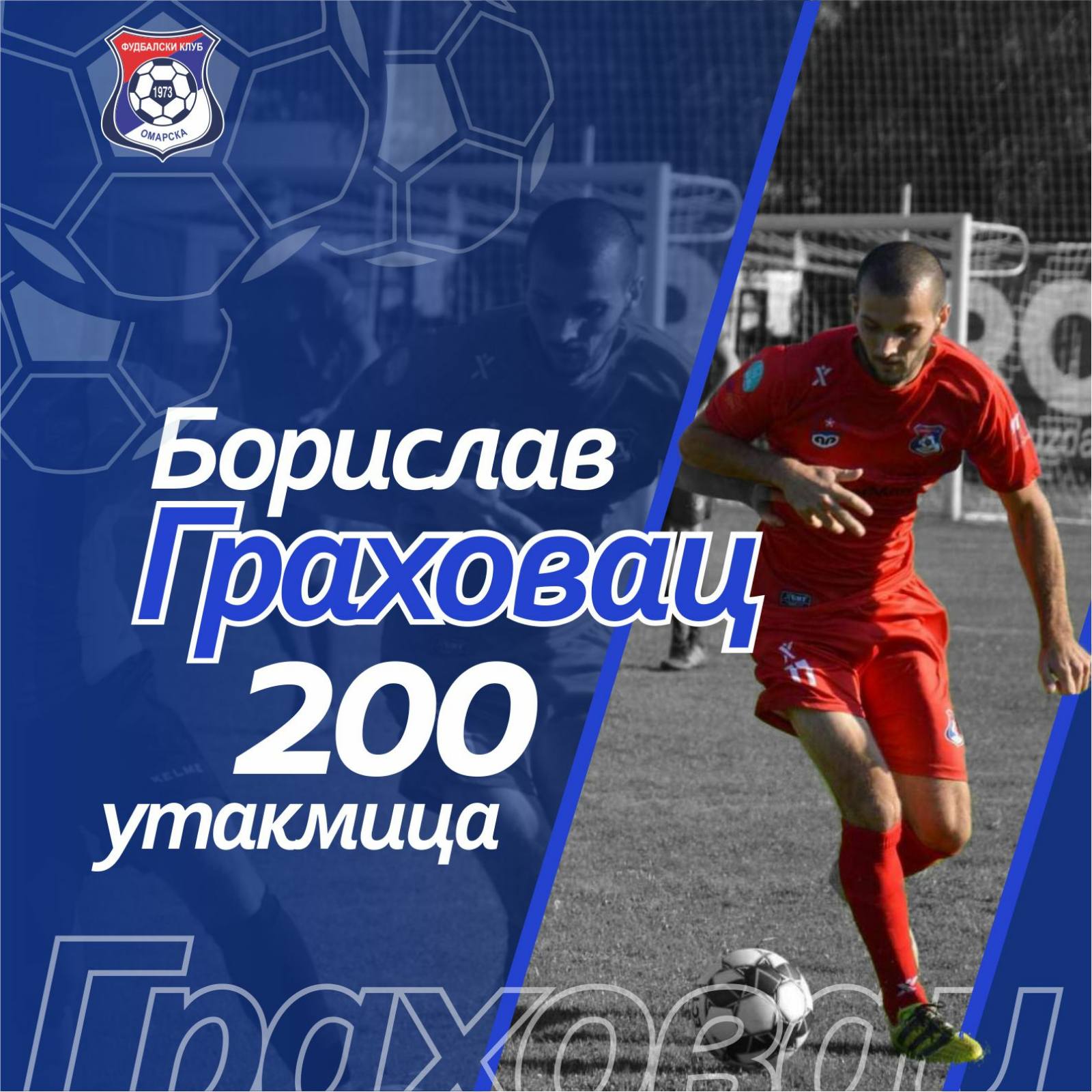 Grahovac Borislav protiv Sutjeske igra dvije stotu prvenstvenu utakmicu u dresu Omarske i tako je postao sedamnaesti fudbaler u istoriji Omarske sa 200 i više utakmica.