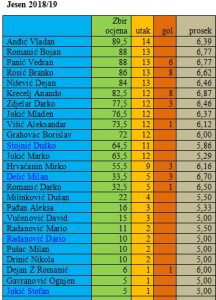 MVP polusezone je Anđić Vladan koji je jedini odigrao sve utakmice, Krecelj Anando je imao najbolji prosjek ocjena (6,87), a Krecelj i Rosić Branko su bili najbolji strijelci sa po 8 postignutih golova.