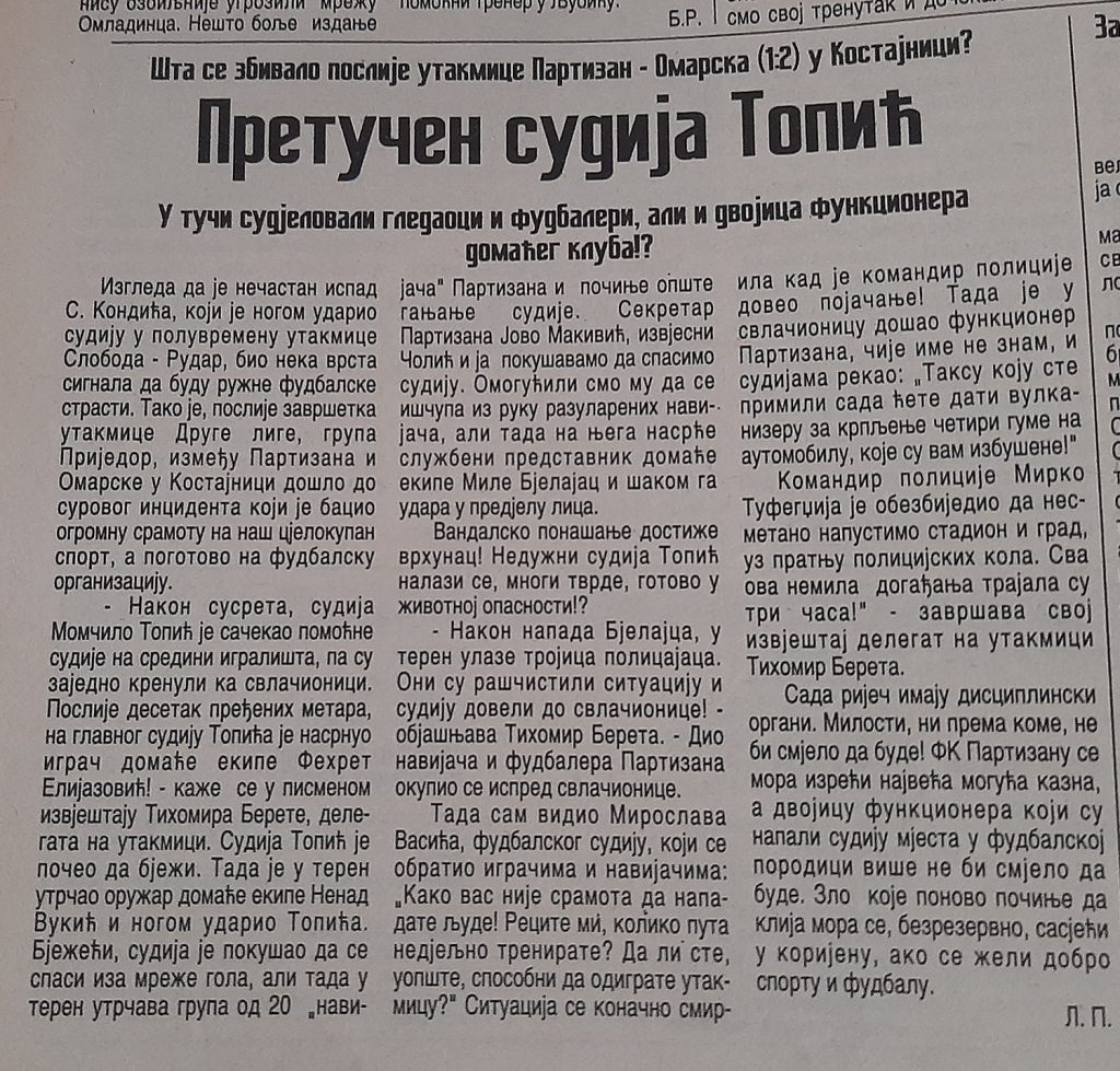 - ova utakmica je ostala u sjećanju po velikom broju navijača iz Omarske, vatrenoj atmosferi u kojoj su korištene i tenkovske dimne bombe zaostale iz rata, te po potjeri domaćih igrača za sudijom Topićem po završetku utakmice.